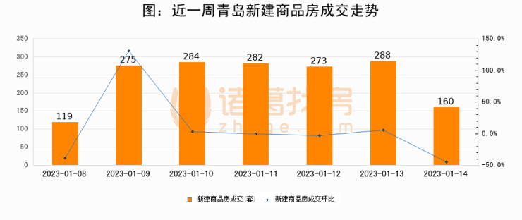 【青岛成交日报】01月14日新房成交160套、二手房6套;涨价房源39套