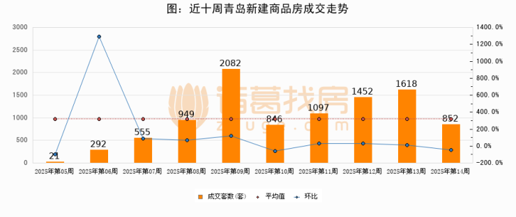 【青岛成交周报】第14周新房成交852套,二手房1162套,涨价房源136套