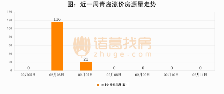 根据诸葛找房数据显示,青岛24小时涨价房源量为0套,较02月10日持平。