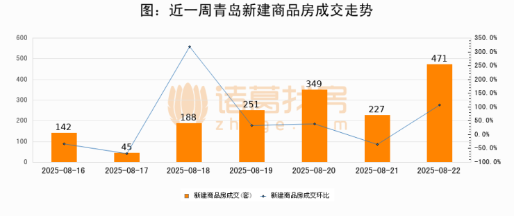 【青岛成交日报】08月22日新房成交471套、二手房194套;