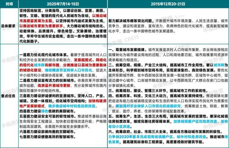 会议部署了城市工作七个方面的重点任务,包括优化城市体系、建设创新城市、建设宜居城市、建设美丽城市、建设韧性城市、建设文明城市、建设智慧城市等。其中提到的构建房地产发展新模式、推进城中村和危旧房改造等内容,受到市场广泛关注。