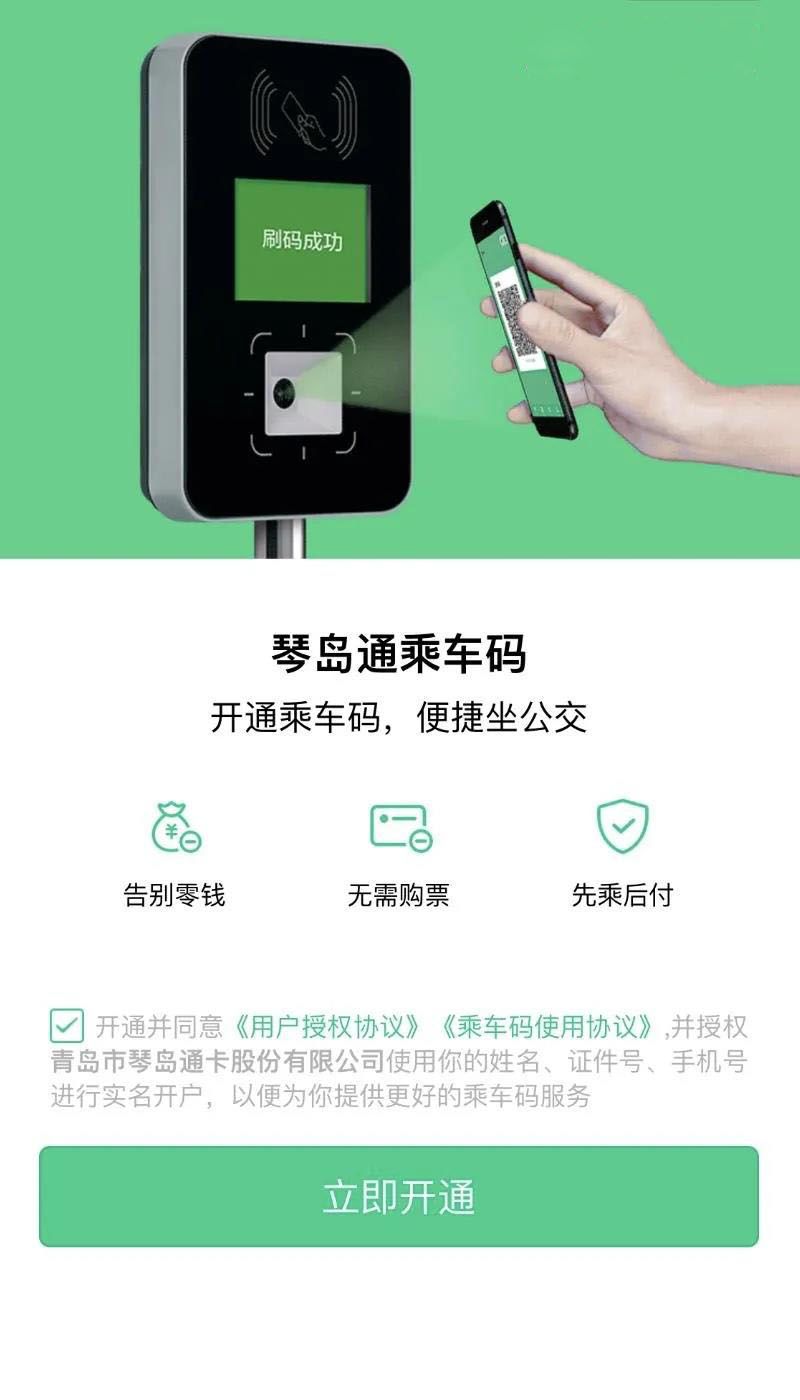近日,“琴岛通乘车码”正式上线青岛公交,覆盖全青岛市约10000辆公交车。