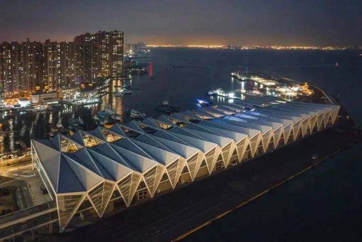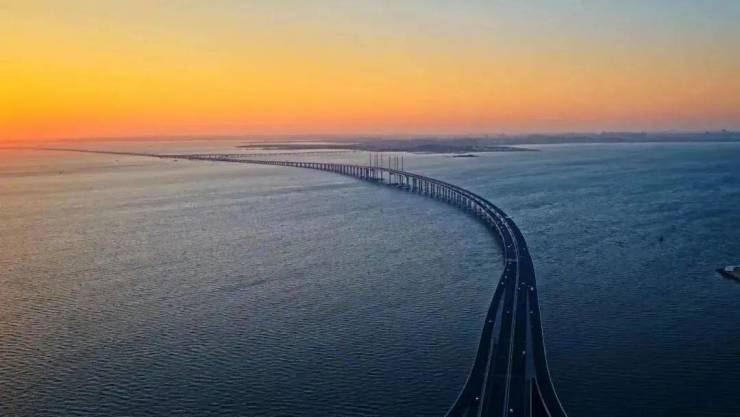▲青岛国际邮轮港以及胶州湾大桥