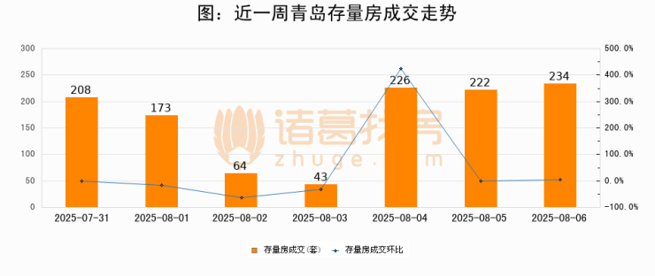 【青岛成交日报】08月06日新房成交208套、二手房234套;