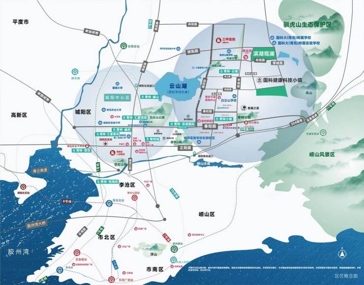 教育方面,紧邻国科大(青岛)附属学校、国科大(青岛)附属实验学校,足够近的距离,陪伴孩子成长的每一步;近驯虎山路学校(规划中) 、白云山学校、青岛实验高级中学、荟城路小学、国城小学等优质学府,护航菁英未来。