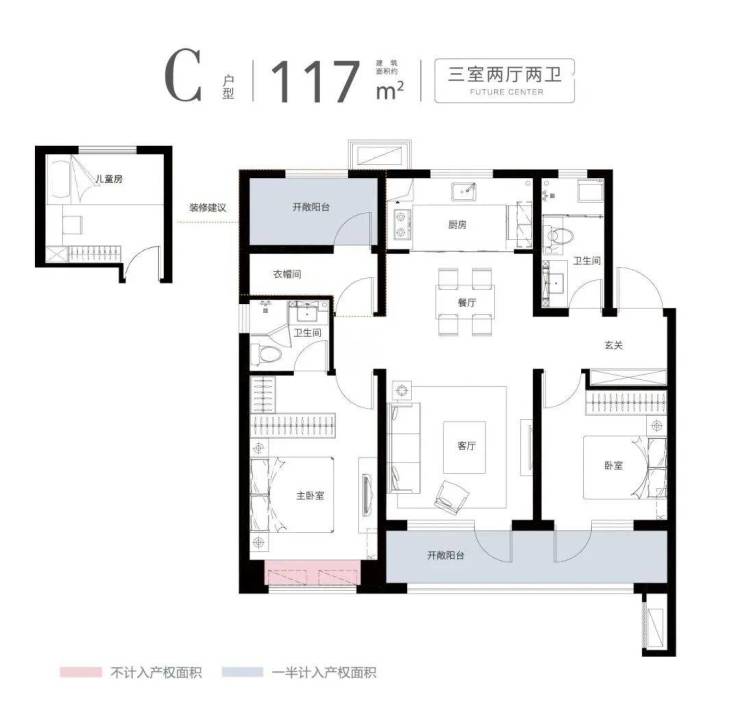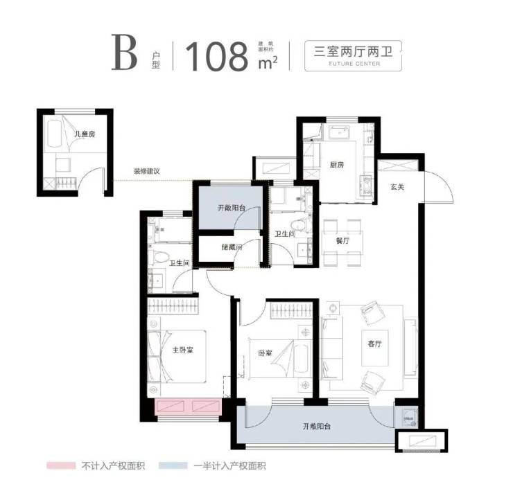 本户型图为89㎡、108㎡、117㎡的户型平面示意图,建筑面积为估算,相同户型单位因楼栋、楼层、单元等差别,局部结构、细部尺寸、面积等可能不同;户型图中的装修装饰、家居布置、空间布局等仅为示意,不作为实际交付标准或合同样品。