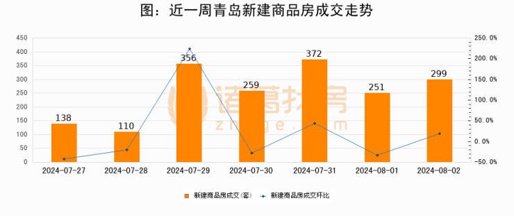 【青岛成交日报】08月02日新房成交299套、二手房221套;涨价房源16套