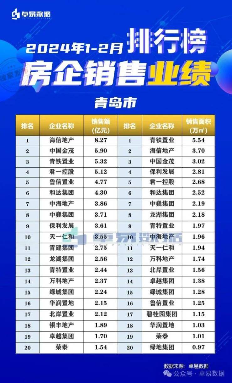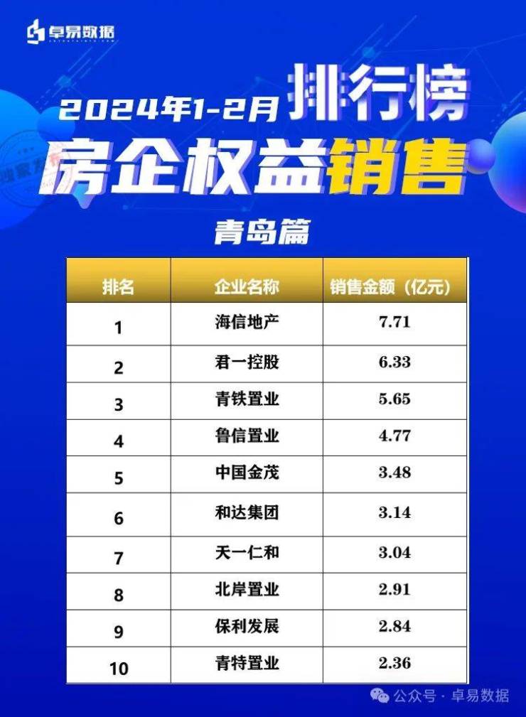 本榜单是根据卓易数据的独立研究,将青岛所有可售项目按照工商注册股权逐一进行权益拆分,剔除重复并表、重复计算的统计方法,展现一个客观的房企商品房销售权益“战绩”,更能清楚一家房企的实际业绩,更好的用于课题研究和监测。