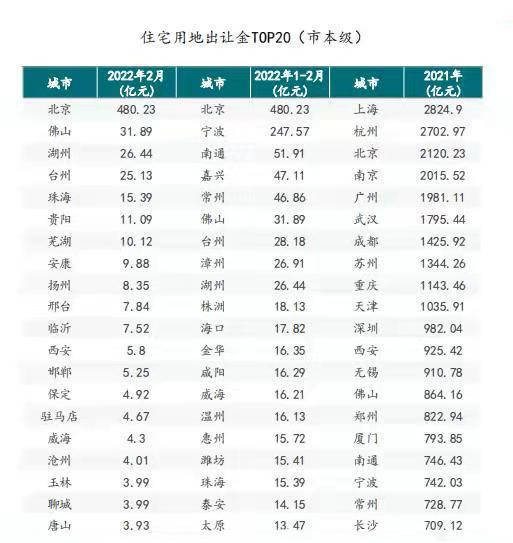 按住宅用地出让金计算,今年前两个月位列前三的城市分别为北京、宁波、南通,土地出让金分别为480.23亿元、247.57亿元、51.91亿元。而从主要房企拿地来看,北京、宁波和嘉兴也是位列代表房企拿地面积前三的城市。