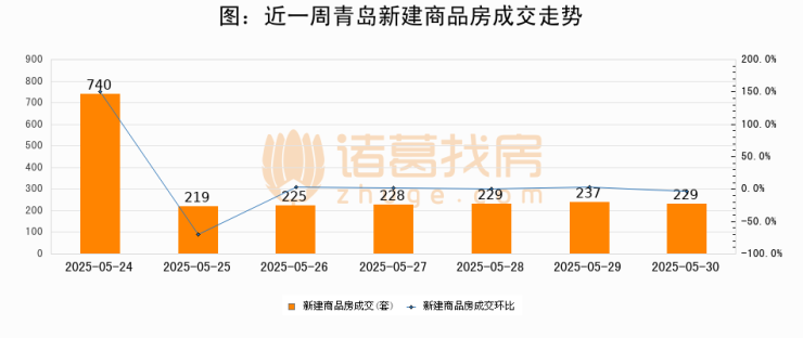 【青岛成交日报】05月30日新房成交229套、二手房214套;