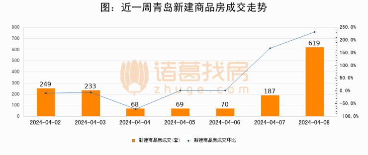 【青岛成交日报】04月08日新房成交619套、二手房386套;涨价房源45套
