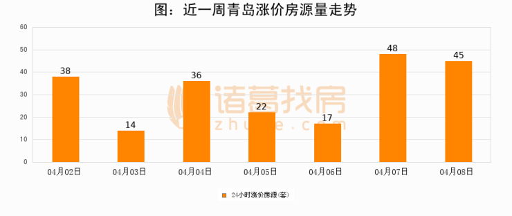 根据诸葛找房数据显示,青岛24小时涨价房源量为45套,较04月07日减少3套,环比下降6.2%。与此同时,涨价房源占比小幅回落,对于购房者来说是一个入市窗口期,购房者可抓住时机入市。