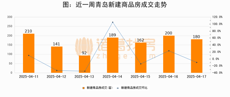 【青岛成交日报】04月17日新房成交180套、二手房276套;