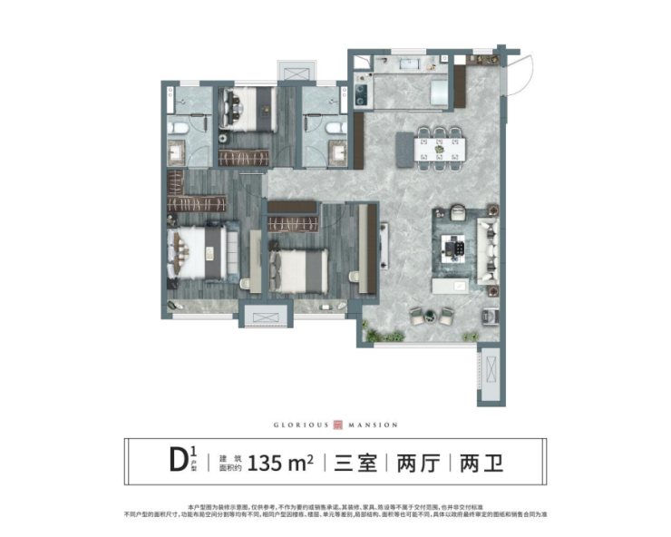 建面约135平米的户型更是通过行业首创——约3.9m超宽学霸房的设计,实现了父母陪伴孩子学习成长的交融空间,让家庭成员在生活中能够实现更多的交流与沟通。