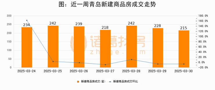 【青岛成交日报】03月30日新房成交215套、二手房78套;涨价房源13套