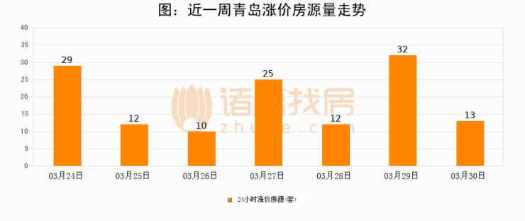 根据诸葛找房数据显示,青岛24小时涨价房源量为13套,较03月29日减少19套,环比下降59.4%。与此同时,涨价房源占比小幅回落,对于购房者来说是一个入市窗口期,购房者可抓住时机入市。
