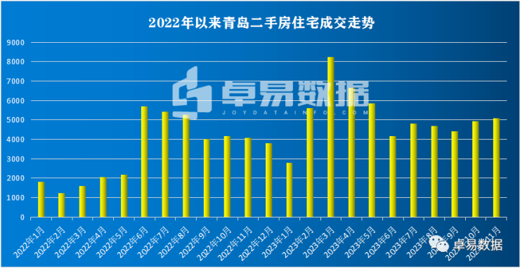 2023年1-11月青岛楼市销售排行 11月微涨签约5792套