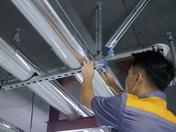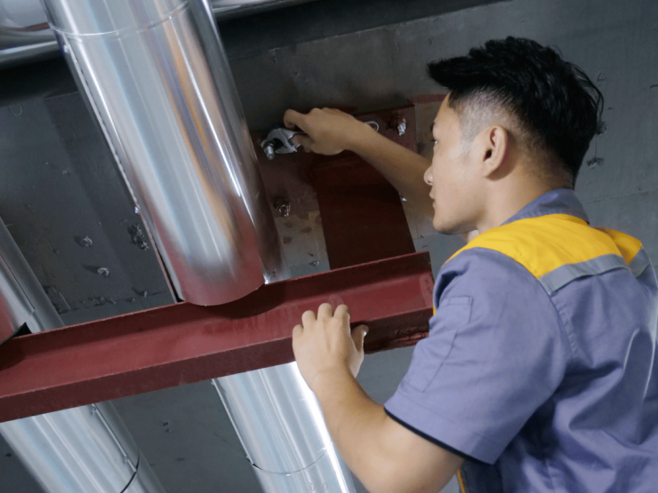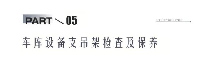 物业工程每年对车库内支吊架,包括但不限于:给排水系统、送排风系统、供暖系统、电力系统等所有车库内的桥架和固定件进行检查、除锈和保养,其中重点检查:拉杆与顶板固定情况、拉杆是否锈蚀、横杆固定螺丝是否锈蚀及脱扣、水管风管是否有锈蚀,通过定期的检查和保养,保证了设备的运行质量,延长了设备运行的寿命。