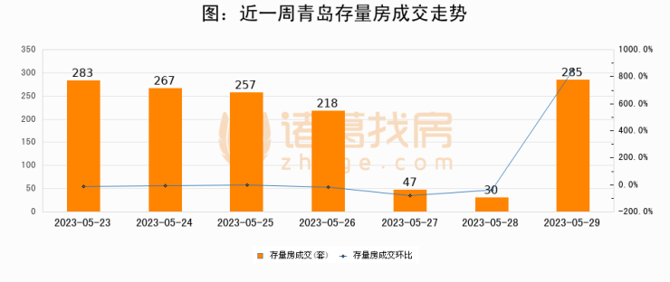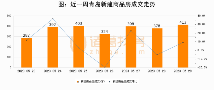 【青岛成交日报】05月29日新房成交413套、二手房285套;涨价房源75套