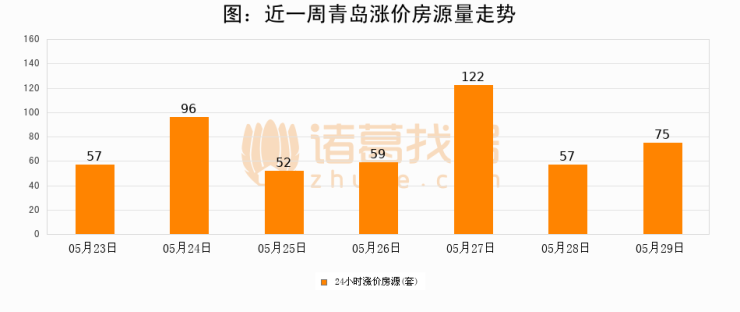 根据诸葛找房数据显示,青岛24小时涨价房源量为75套,较05月28日增加18套,环比上涨31.6%。与此同时,涨价房源占比小幅扩大,业主信心有所提升。