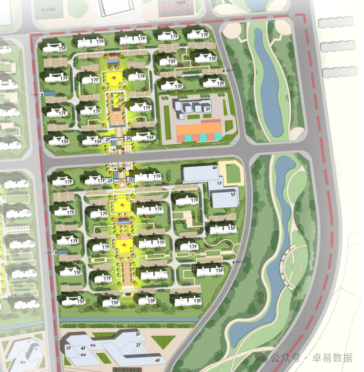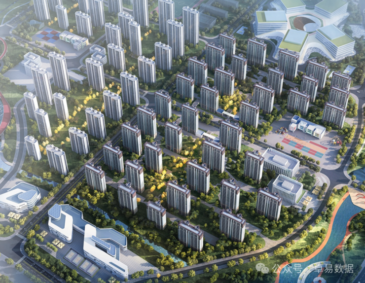 共有2宗住宅用地,占地11.4万㎡,总建面24.2万㎡,建设37栋住宅楼(4栋13F+11栋15F+22栋17F)。