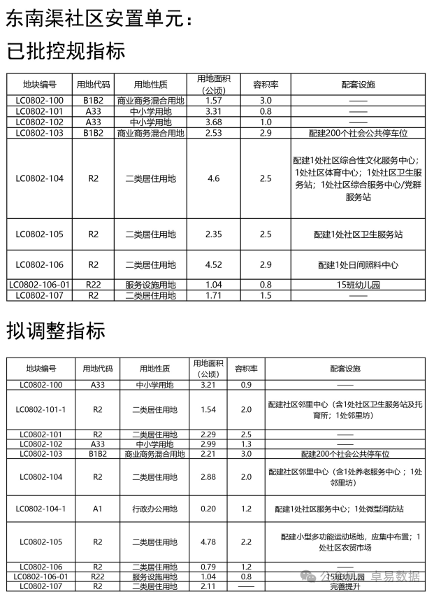 本次调整共涉及已批控规13个地块,其中东南渠社区安置单元9个地块,十梅庵社区安置单元4个地块。总用地面积约59公顷,其中东南渠社区安置单元约33公顷,十梅庵社区安置单元约26公顷。其中住宅类用地25.79万㎡,合计约387亩,共计74栋楼。