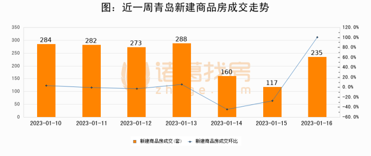 【青岛成交日报】01月16日新房成交235套、二手房182套;涨价房源57套