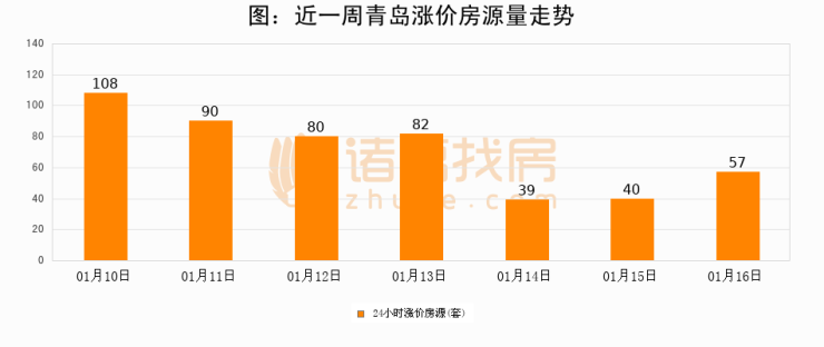 根据诸葛找房数据显示,青岛24小时涨价房源量为57套,较01月15日增加17套,环比上涨42.5%。与此同时,涨价房源占比小幅扩大,业主信心有所提升。