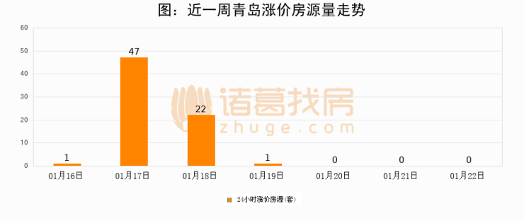 根据诸葛找房数据显示,青岛24小时涨价房源量为0套,较01月21日持平。
