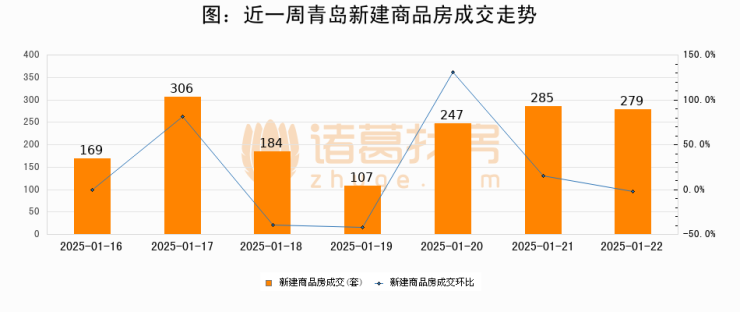 【青岛成交日报】01月22日新房成交279套、二手房128套;
