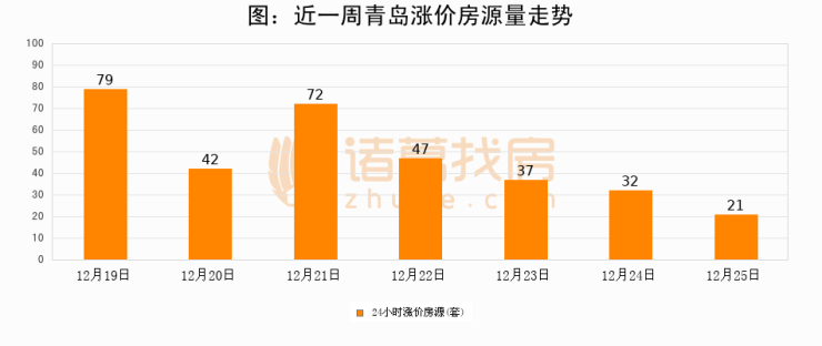 根据诸葛找房数据显示,青岛24小时涨价房源量为21套,较12月24日减少11套,环比下降34.4%。与此同时,涨价房源占比小幅回落,对于购房者来说是一个入市窗口期,购房者可抓住时机入市。