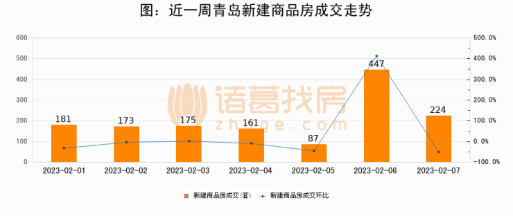 【青岛成交日报】02月07日新房成交224套、二手房213套;涨价房源159套