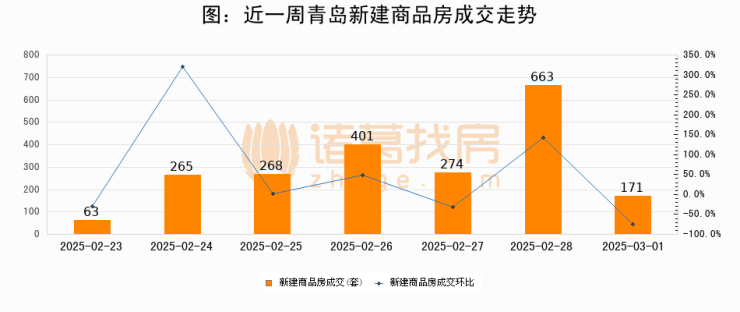 【青岛成交日报】03月01日新房成交171套、二手房74套;涨价房源53套