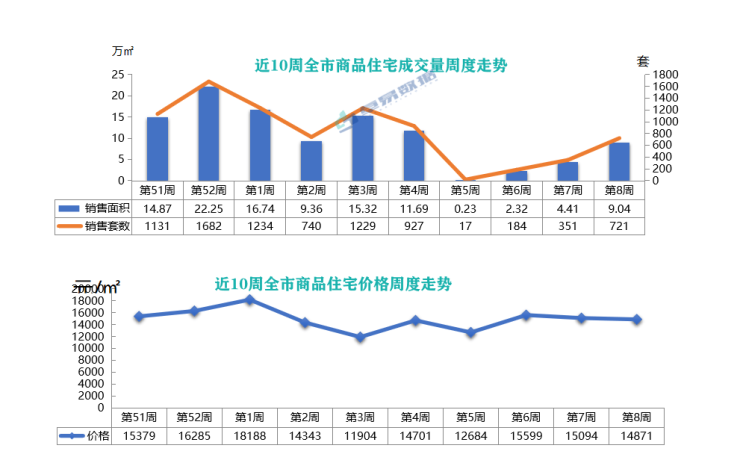 价格方面,上周青岛新建商品住宅均价为14871元/㎡,下降223元/㎡,降幅为1.48%。