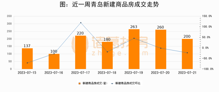 【青岛成交日报】07月21日新房成交200套、二手房188套;涨价房源56套