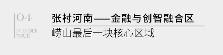 崂山最后一块核心区域就是现在最火的片区——张村河南岸,崂山发展天花板,定位是金融与创智融合区,高端研发总部、高端居住,主要以第三服务产业为主。