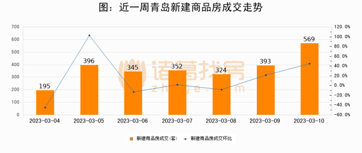 【青岛成交日报】03月10日新房成交569套、二手房329套;涨价房源282套