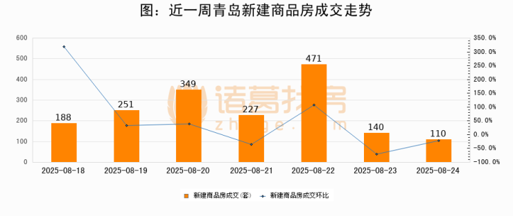 【青岛成交日报】08月24日新房成交110套、二手房45套;