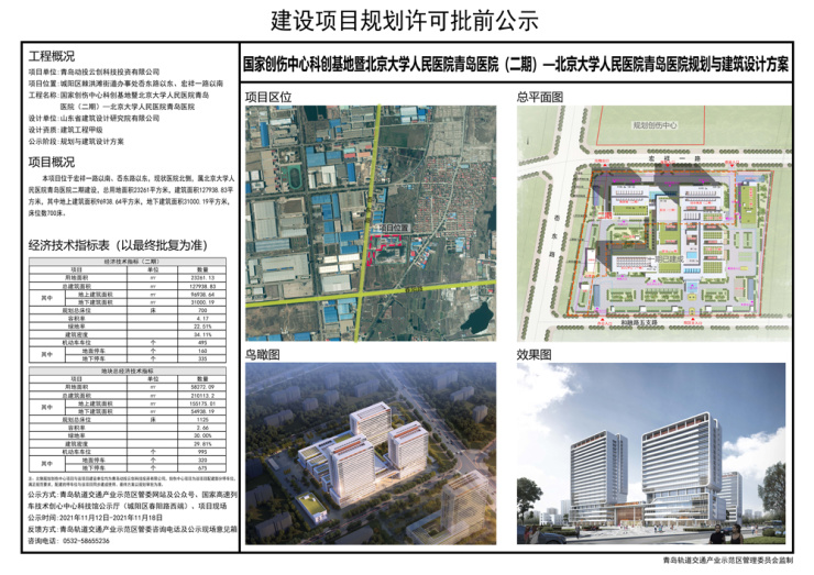 北京大学人民医院青岛医院(二期)规划建设,总用地面积约2.3万平方米,床位数700床。