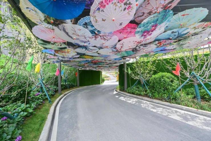 与样板间同时开放的还有部分的实景园林。展示面积虽小,但能够看出来项目对于园林设计的一些巧思。