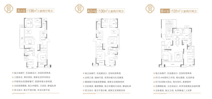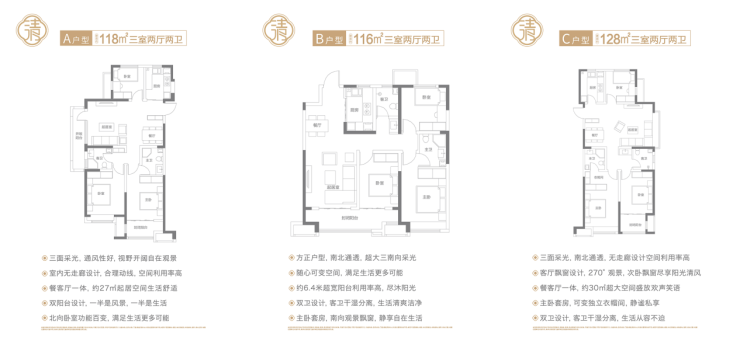 目前释放的2号楼3号楼,共有区间在116-136㎡的六个户型,可供不同需求的置业者选择。每款户型都做到了南北通透,格局方正。