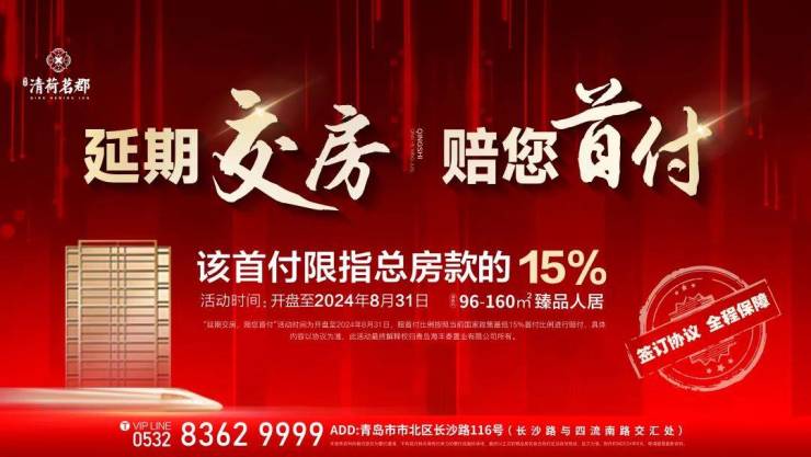 市北区的青实·清荷茗郡发布了一个购房承诺——“延期交房,赔您首付”。也就是说,在今年开盘到8月31日期间购房的业主,如果项目在合同约定的时间内没有交付,将获得总房款15%的“首付金”赔偿。(具体执行细节以购房合同为准)