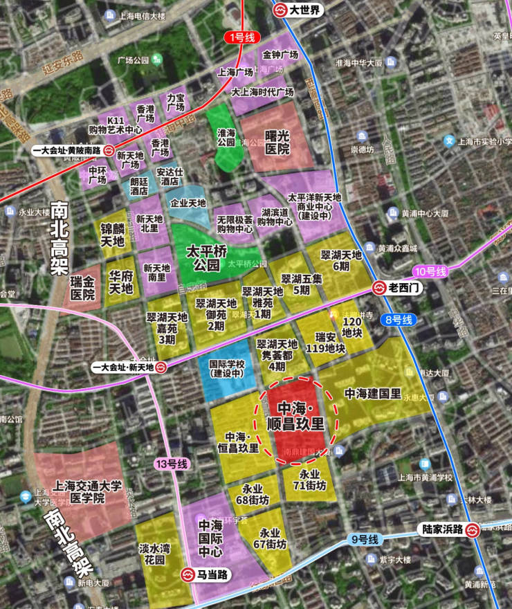 从项目周边来看,“中海·顺昌玖里”位于上海黄浦区新天地板块,是上海传统的豪宅区,项目紧邻中海建国里、翠湖天地四期(即“翠湖天地隽荟”)。去年4月,网传消息“女基金经理在上海翠湖四期买房,单价接近44万元,总价1.7亿元”即出自该楼盘。