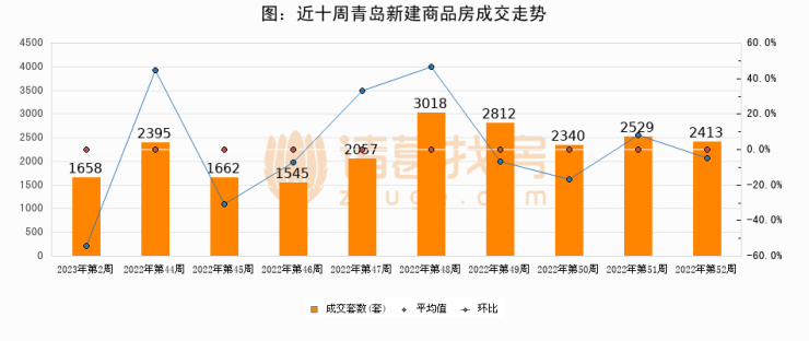 【青岛成交周报】第02周新房成交2413套,二手房555套,涨价房源330套