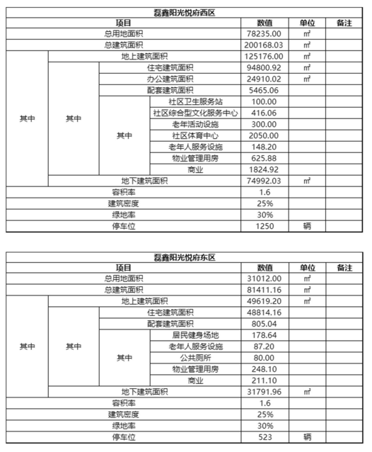 磊鑫阳光悦府东区项目总用地面积31012平方米,总建筑面积8.14万平方米,拟建设住宅及配套,包括10栋6-11F住宅及1栋人才公寓,还规划配套建筑面积805平方米,包括有居民健身场地、老年人服务设施、公共厕所、物业管理用房和商业等,规划停车位523个。