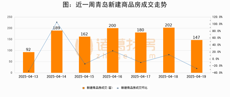 【青岛成交日报】04月19日新房成交147套、二手房74套;