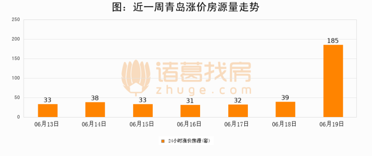 根据诸葛找房数据显示,青岛24小时涨价房源量为185套,较06月18日增加146套,环比上涨374.4%。与此同时,涨价房源占比小幅扩大,业主信心有所提升。
