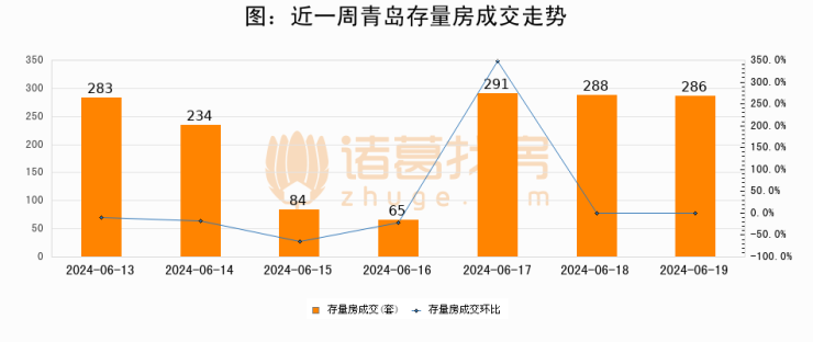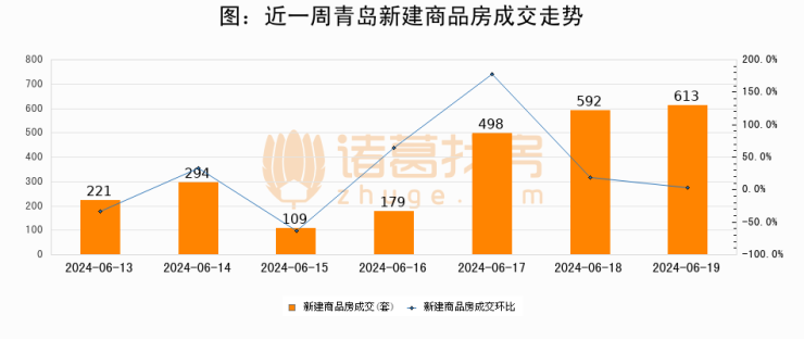 【青岛成交日报】06月19日新房成交613套、二手房286套;涨价房源185套