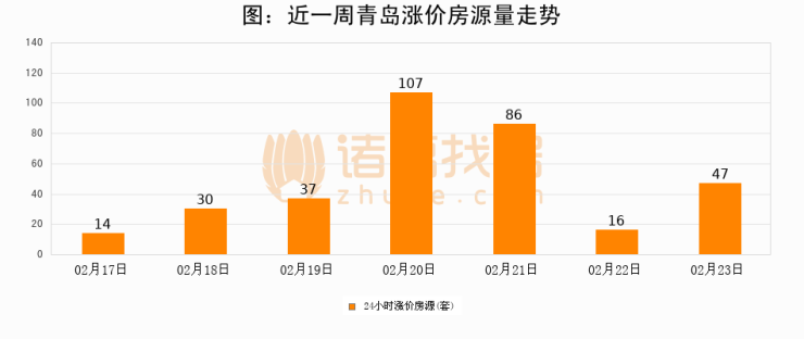 根据诸葛找房数据显示,青岛24小时涨价房源量为47套,较02月22日增加31套,环比上涨193.8%。与此同时,涨价房源占比小幅扩大,业主信心有所提升。