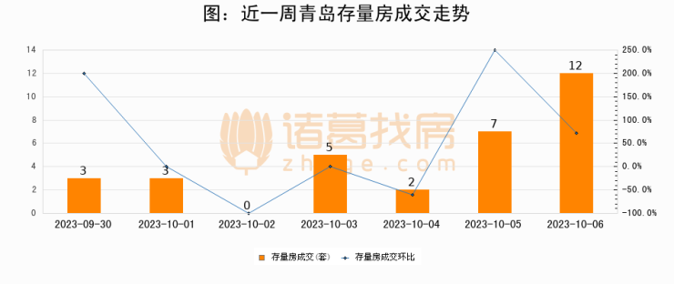 从存量房来看,2023年10月06日青岛存量房单日成交12套,比昨日增加5套,环比上涨71.4%。从近一周存量房成交来看,青岛存量房日均成交套数为4套,10月06日单日成交12套,高于近一周平均水平200%。